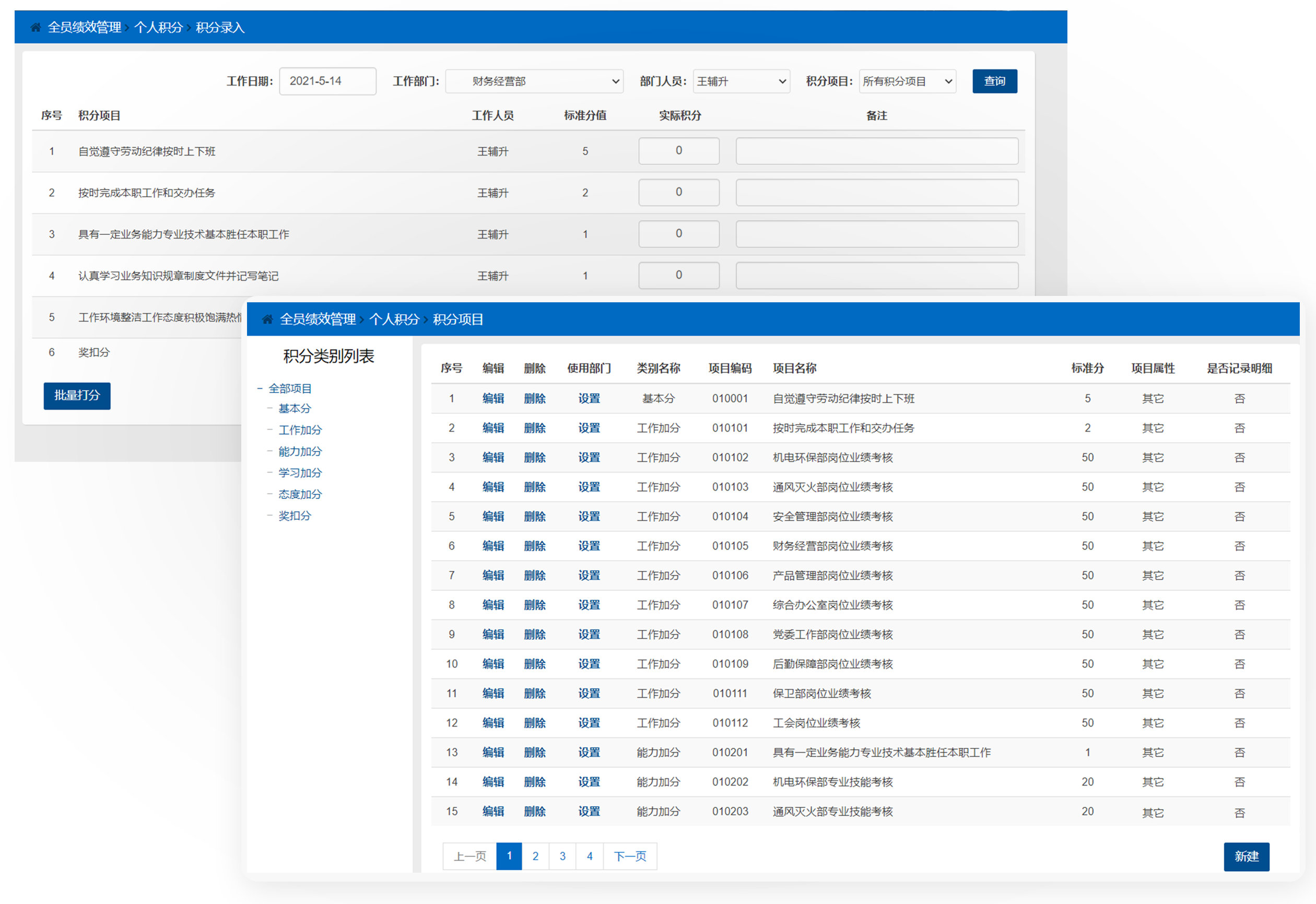 员工积分制考核是对员工的业绩、能力和综合表现用奖分和扣分进行量化考核,并用软件记录和奖励的一种管理方法,可以为员工阿米巴奖金及福利的发放,选人、用人、留人机制的建立,以及各项名誉的排名、待遇的落实,提供重要的参考依据和标准