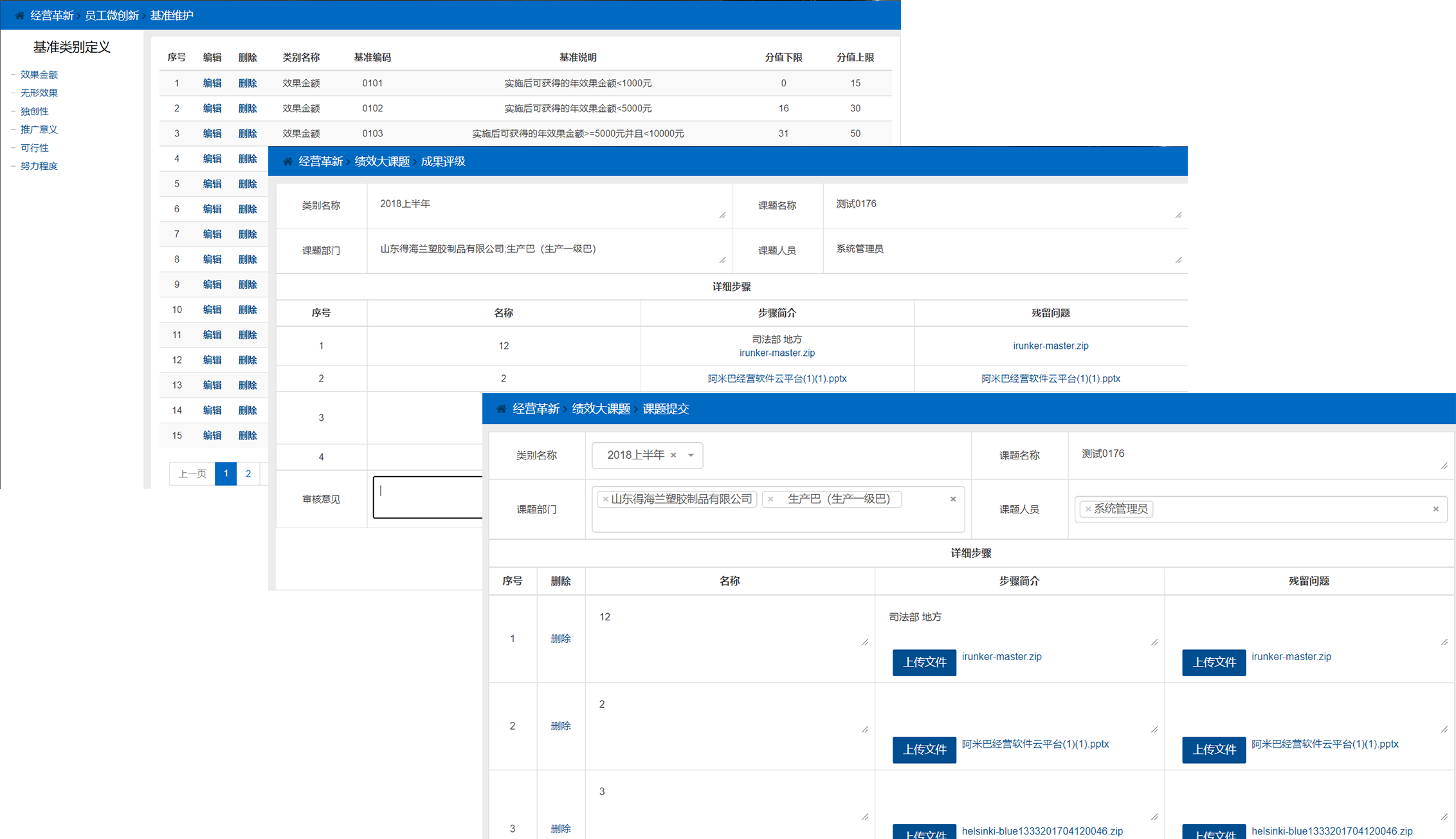对于无法通过阿米巴核算报表数据进行计算,通过KPI指标进行量化考核的阿米巴考核项目,可以通过“阿米巴定性考核”模块中进行定义,采用整体评价的方式进行量化评分