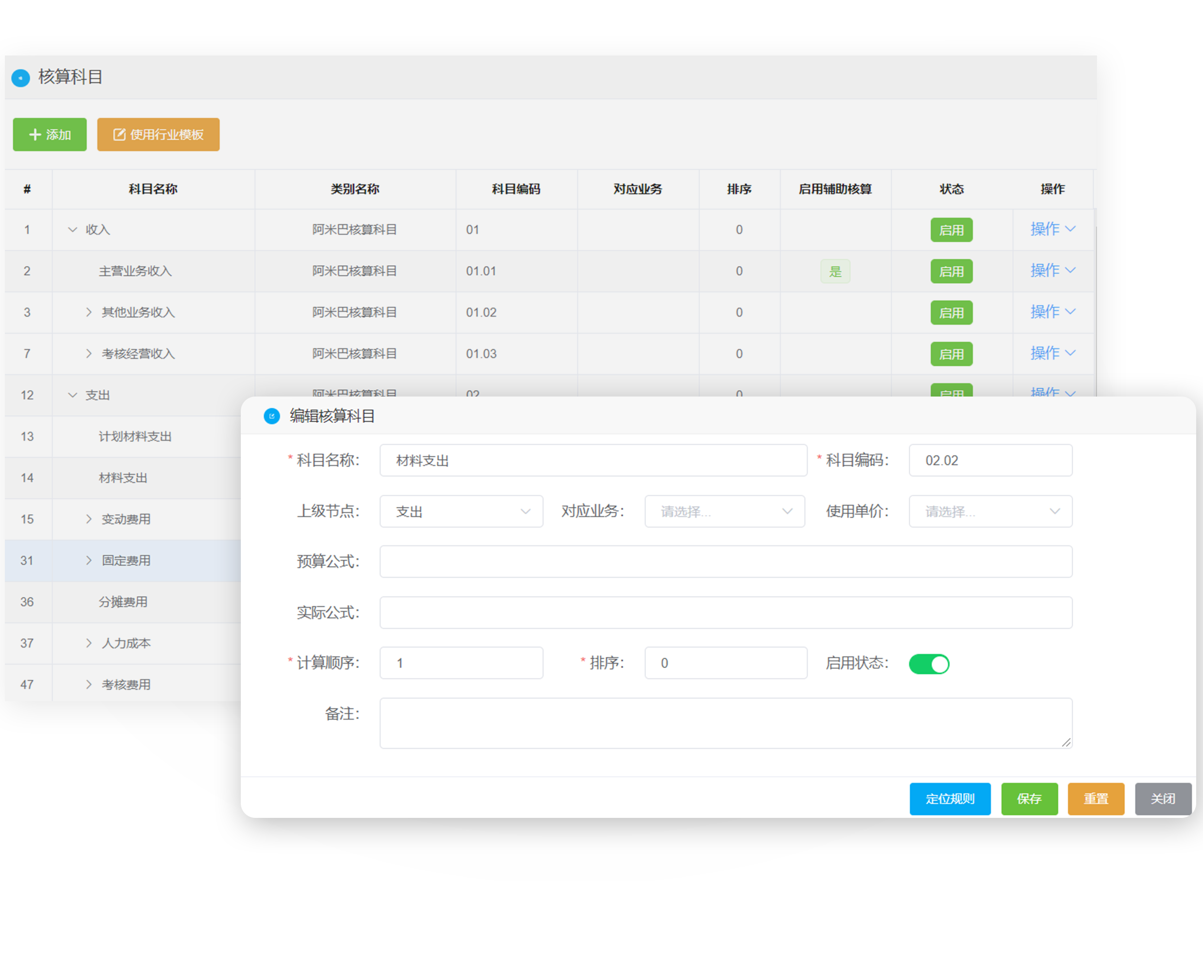 提供多种行业阿米巴核算科目模板,可以一键导入标准阿米巴核算科目