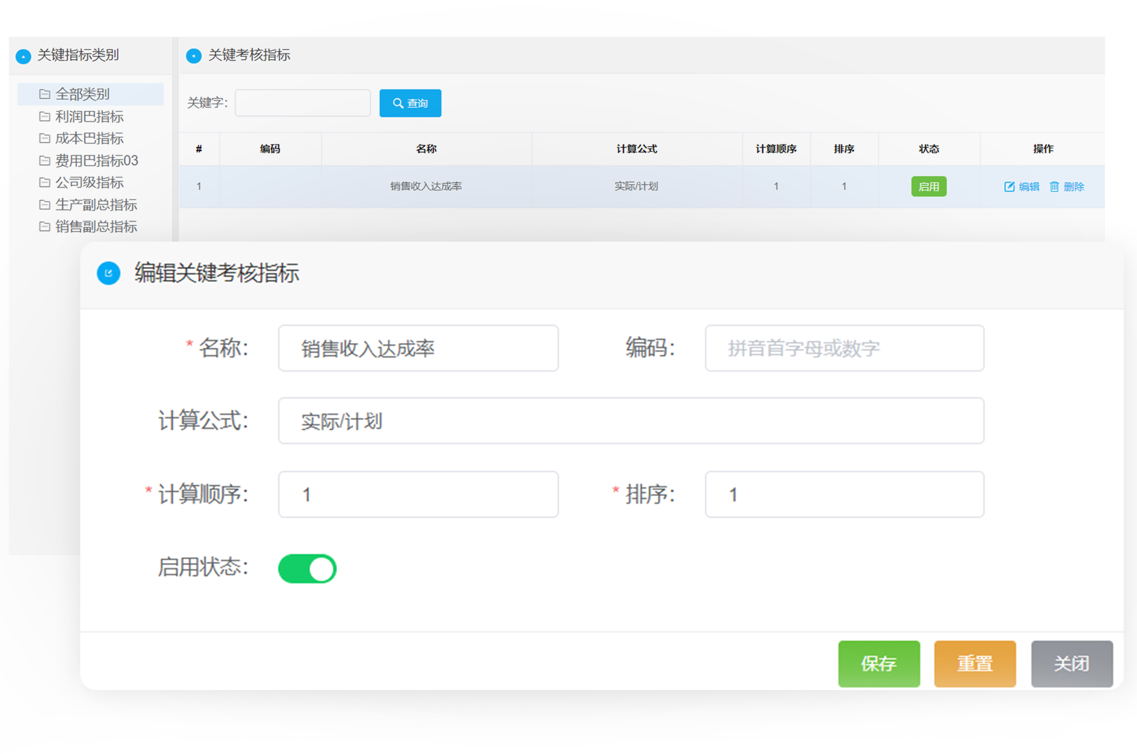 KPI指标在软件中是通过阿米巴核算报表数据,根据设置的计算公式自动计算