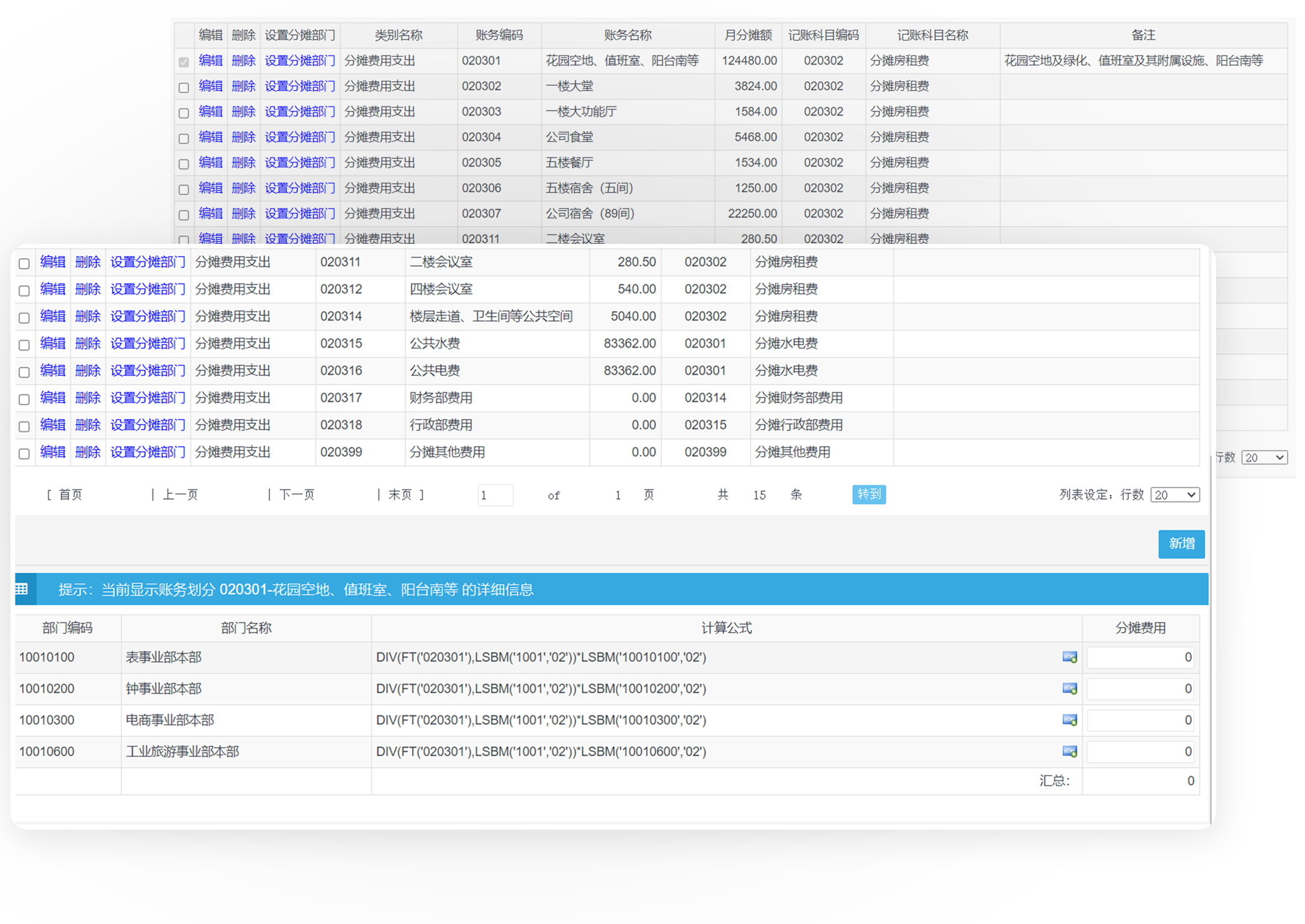 在费用分摊设置模块中,利用软件提供的计算函数,统一设置各项分摊费用的计算公式,月底实现一键分摊计算