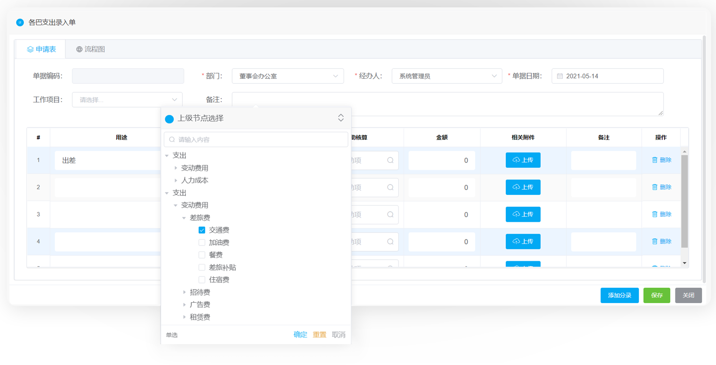 阿米巴收入单据、阿米巴支出单据可自定义审批流程,软件支持手机单据录入及审批